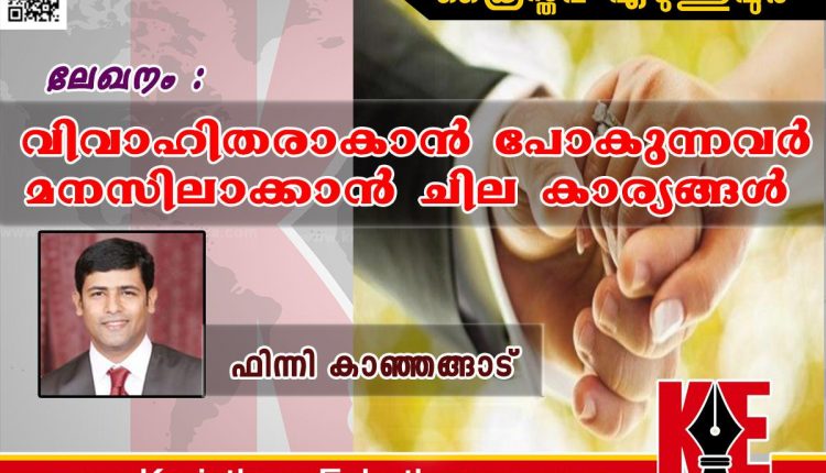 വിവാഹം കഴിക്കാന് പോകുന്നവര് മനസിലാക്കാന് ചില കാര്യങ്ങള്