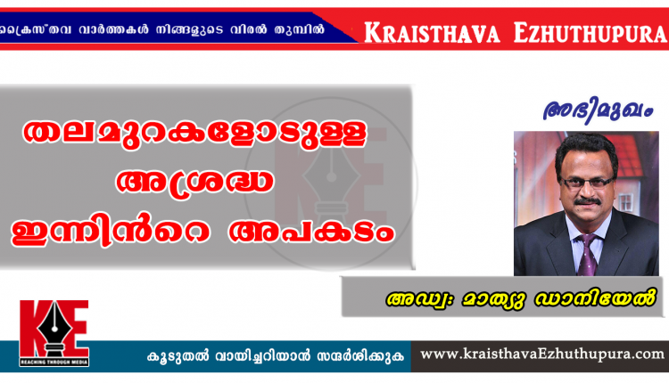 അഭിമുഖം: ” തലമുറകളോടുള്ള അശ്രദ്ധ ഇന്നിന്റെ അപകടം”