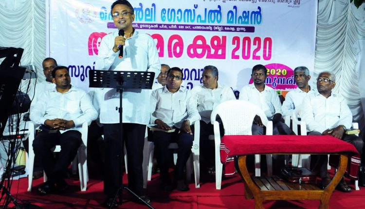 ഊന്നുകൽ: ഹെവൻലി ഗോസ്പൽ മിഷന്റെ ആഭിമുഖ്യത്തിൽ ”ആത്മരക്ഷാ 2020” സുവിശേഷ മഹായോഗവും സംഗീത വിരുന്നും ഐ.പി.സി പന്തളം സെന്റർ മിനിസ്റ്റർ പാസ്റ്റർ ജോൺ ജോർജ്ജ് ഉത്ഘാടനം ചെയ്തു.