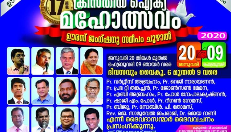 17-മത് ക്രിസ്തീയ ഐക്യ മഹോത്സവം ജനുവരി 20 മുതൽ