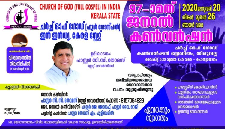 ചര്ച്ച് ഓഫ് ഗോഡ് കേരളാ സ്റ്റേറ്റ് 97-ാമത് ജനറല് കണ്വന്ഷന് നാളെ മുതല്