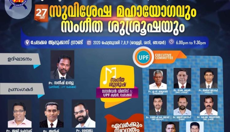 ചേലക്കര യു.പി.എഫ് 27-മത് സുവിശേഷ യോഗവും സംഗീതവിരുന്നും