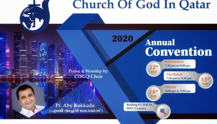 പ്രസ്തുത കൺവെൻഷൻ ഫെബ്രുവരി 12, 13 തീയതികളിൽ വൈകീട്ട് 7:30 മുതൽ 9:30 വരെയും, 14-ആം തീയതി വൈകീട്ട് 6:30 മുതൽ 9 വരെ അബുഹമൂറിൽ ഐ.ഡി.സി.സി കോംപ്ലക്സിൽ, ബിൽഡിംഗ് നമ്പർ 2, ഹാൾ നമ്പർ 4 -ൽ വച്ച് നടത്തപ്പെടും. ഗാനശുശ്രൂഷകൾക്കു ചർച്ച് ഓഫ് ഗോഡ് ഇൻ ഖത്തർ ക്വയർ നേതൃത്വം നൽകും.