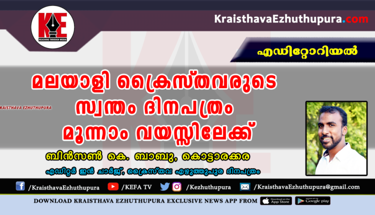 എഡിറ്റോറിയൽ: മലയാളി ക്രൈസ്തവരുടെ സ്വന്തം ദിനപത്രം മൂന്നാം വയസ്സിലേക്ക്