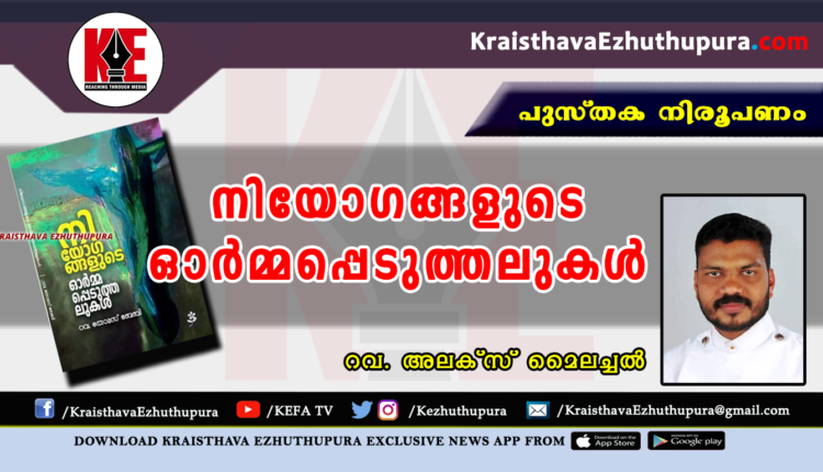 ബഹു. തോമസ് ബേബി അച്ചന് സാമ്രാജ്യത്വത്തിന്റെയും അധീശത്വത്തിന്റെയും ചാരം മൂടിയ കാഴ്ചകള് മങ്ങിയിരിക്കുന്ന നിയോഗവഴിയില് കനല് തെളിയിക്കുന്ന തീക്കാറ്റ് പകര്ന്ന് വീശുന്നു. ആ തീക്കാറ്റിനെ ജ്വലിപ്പിക്കാനും, എരിക്കാനും വെളിച്ചം പകരാനും എല്ലാം ശേഷിയുണ്ട്. അതു തന്നെയാണ് څനിയോഗങ്ങളുടെ ഓര്മ്മപ്പെടുത്തലുകള്چ എന്ന വേദപഠന സമാഹാരത്തെ വ്യത്യസ്ത അനുഭവമാക്കി മാറ്റുന്നത.് നിയോഗ വഴിയില് മറവി ബാധിച്ചവര്ക്ക് ഈ തീക്കാറ്റ് ചില മുറിവുകള് ശേഷിപ്പിക്കും. തിബര്യാസ് കടല്ക്കരയില് കനലില് ചുട്ട അപ്പം നീട്ടി തന്ന കരങ്ങളില് കണ്ട അതേമുറിവുകള്. മുറിഞ്ഞെടുത്ത ശരീരമുള്ള സഭയുടെ പുത്തന് ദര്ശനങ്ങള്.