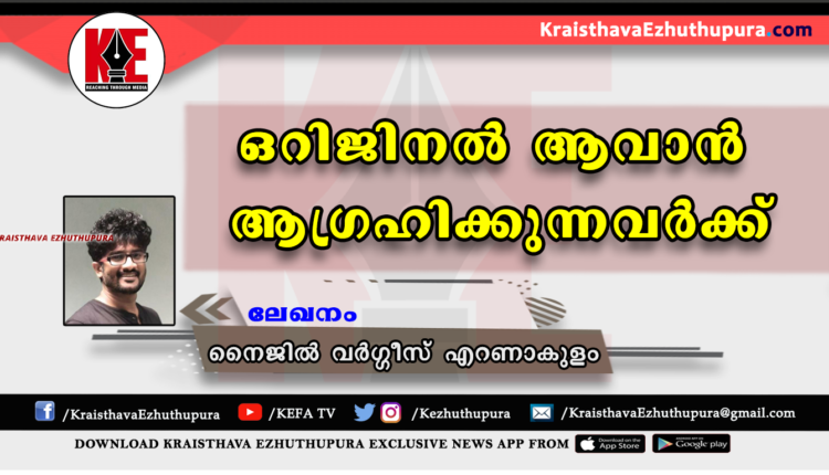 ലേഖനം: ഒറിജിനൽ ആവാൻ ആഗ്രഹിക്കുന്നവർക്ക് | നൈജിൽ വർഗ്ഗീസ്, എറണാകുളം
