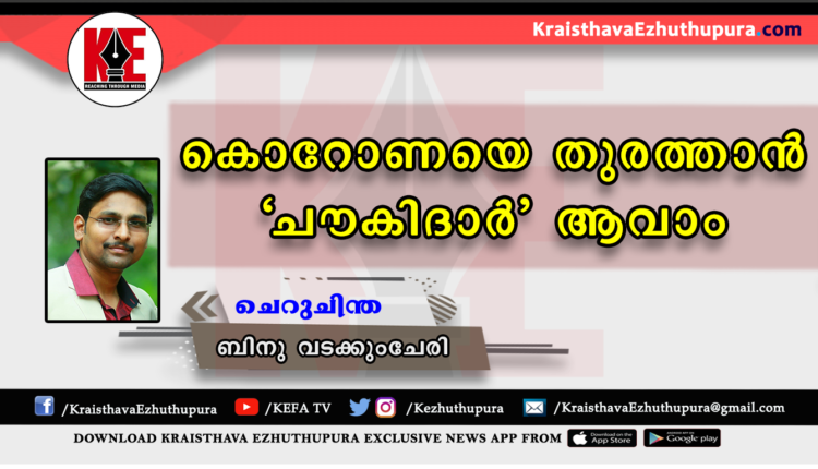 കൊറോണ അഥവ കോവിഡ് 19 വൈറസ് ബാധയുടെ പശ്ചാത്തലത്തിൽ നമ്മുടെ ദേശത്തിന്റെ കാവൽക്കാരൻ ആകുവാന് നമുക്ക് ഓരോരുത്തര്ക്കും