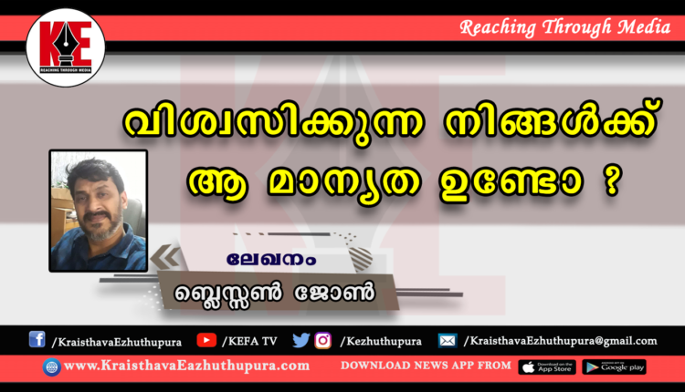 ലേഖനം: വിശ്വസിക്കുന്ന നിങ്ങൾക്ക് ആ മാന്യത ഉണ്ടോ ? | ബ്ലെസ്സൺ ജോൺ