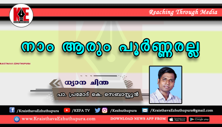 ചെറുതും വലുതുമായ നിരവധി കുറവുകൾ പരാജയങ്ങൾ പാപങ്ങൾ നമ്മുടെ ജീവിതത്തിൽ വന്നിട്ടുണ്ട്.