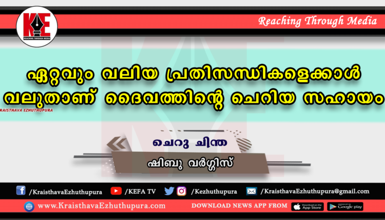 ചെറു ചിന്ത: ഏറ്റവും വലിയ പ്രതിസന്ധികളെക്കാൾ വലുതാണ് ദൈവത്തിന്റെ ചെറിയ സഹായം | ഷിബു വര്ഗ്ഗിസ്