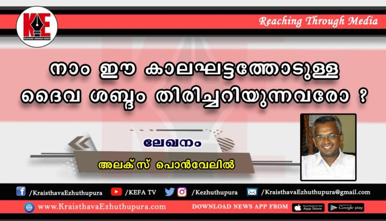 ലേഖനം: നാം ഈ കാലഘട്ടത്തോടുള്ള ദൈവ ശബ്ദം തിരിച്ചറിയുന്നവരോ ? | അലക്സ് പൊൻവേലിൽ