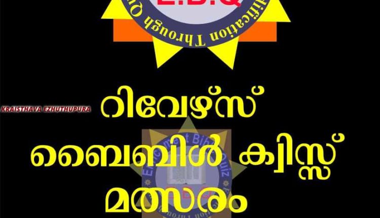 എൻറിച്ച്മെന്റ് ബൈബിൾ ക്വിസിന്റെ നേതൃത്വത്തിൽ ആദ്യമായി റിവേഴ്സ് ക്വിസ് നടക്കും. വേദ പുസ്തക ജ്ഞാനവും ദൈവം നൽകിയിട്ടുള്ള കഴിവുകളും പ്രോത്സാഹിപ്പിക്കുന്നതിന്റെ ഭാഗമായി നടത്തുന്ന ഈ ക്വിസ് വളരെ ആകാംക്ഷയോടെയാണ് ക്വിസ്സ് പ്രേമികൾ നോക്കിക്കാണുന്നത്. ഏപ്രിൽ 27-ന് മത്സരം ആരംഭിക്കും.