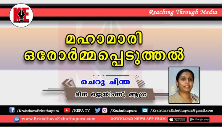 ചെറുചിന്ത : മഹാമാരി ഒരോർമ്മപ്പെടുത്തൽ | ദീന ജെയിംസ്, ആഗ്ര