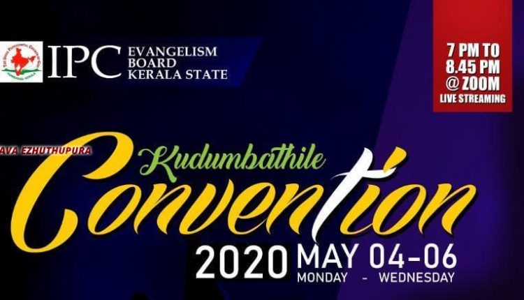 കുമ്പനാട് : ഐ.പി.സി ഇവാഞ്ചലിസം ബോർഡിന്റെ നേതൃത്വത്തിൽ നടത്തപെടുന്ന ഓൺലൈൻ കൺവൻഷന്റെ മൂന്നാം ദിവസമായ ഇന്ന് (മെയ് 6) വൈകിട്ട് 7മണി മുതൽ സൂമിൽ നടത്തപ്പെടുന്നു. ഇതിന്റെ തത്സമയ സംപ്രേഷണം ക്രൈസ്തവ എഴുത്തുപുരയിലും, ന്യൂമാ ഹെർമന്യൂട്ടിക്ക്സിലും, മറ്റ് മാധ്യമങ്ങളിലും ഉണ്ടായിരിക്കുന്നതാണ്.
