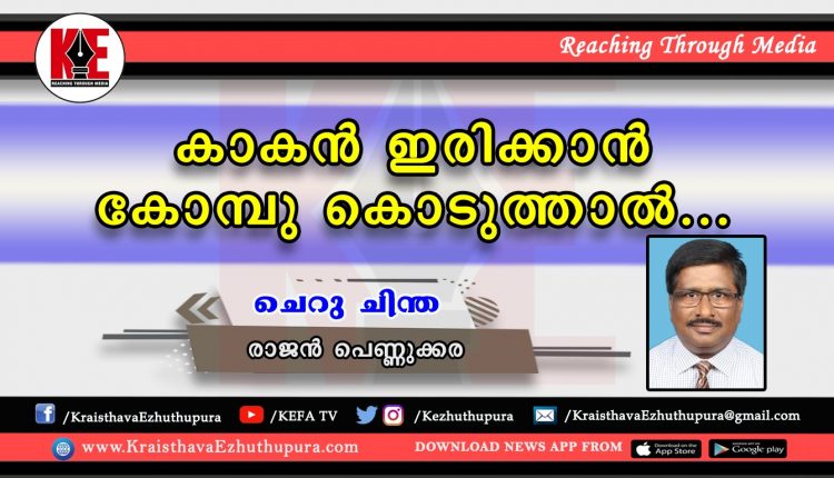 പഴങ്കഥയും ചെറുചിന്തയും: കാകൻ ഇരിക്കാൻ കോമ്പു കൊടുത്താൽ… | രാജൻ പെണ്ണുക്കര