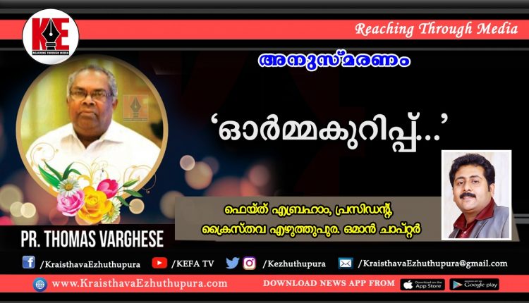 തന്നിൽ ഏല്പിച്ച നിയോഗം പൂർത്തീകരിച്ചു പ്രിയ ദൈവദാസൻ മടങ്ങുമ്പോൾ, എന്നും ഓർക്കുവാനും, മാതൃകയാക്കുവാനും ഒട്ടനേകം കാര്യങ്ങൾ.