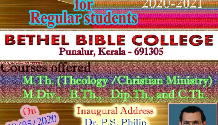 പുനലൂർ ബഥേൽ ബൈബിൾ കോളേജ് ഓൺലൈൻ ക്ലാസുകൾ മെയ് 28 ന് ആരംഭിക്കും