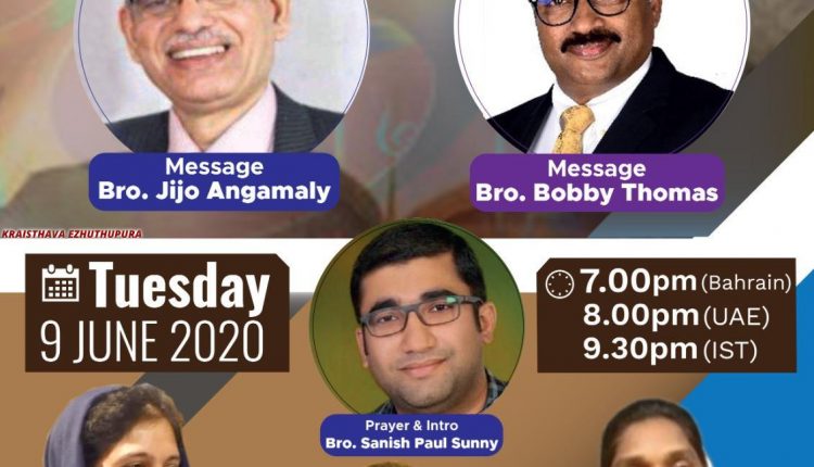 സനീഷ് പോൾ സണ്ണി പ്രാർത്ഥിച്ച് ആരംഭിക്കുന്ന മീറ്റിംഗിൽ ജിജോ അങ്കമാലി, ബോബി തോമസ് എന്നിവർ ദൈവവചനം ശുശ്രൂഷിക്കും.