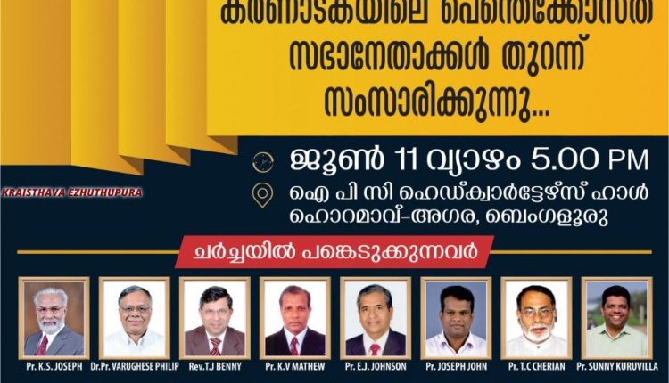 കർണാടകയിൽ ആരാധനാലയങ്ങൾ തുറക്കുമൊ? പെന്തെക്കോസ്ത് സഭാ നേതാക്കളുമായ് ബിസിപിഎ മുഖാമുഖ ചർച്ച ജൂൺ 11-ന്