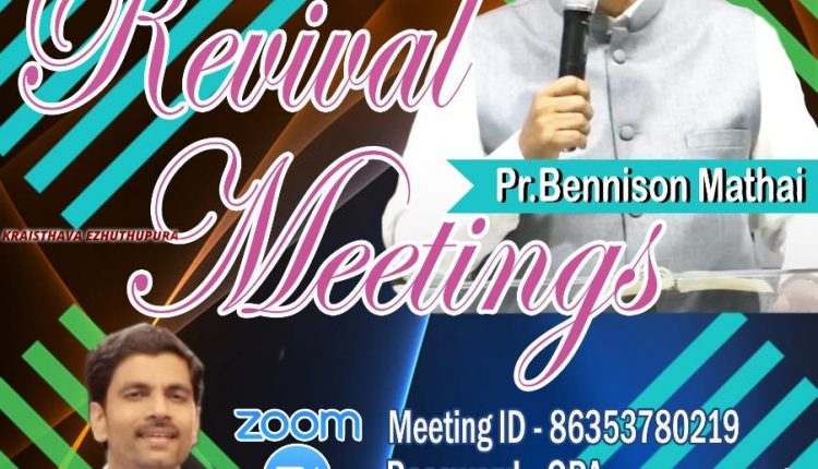 ഈ കാലഘട്ടത്തിൽ ഉണർവിന്റെ ആവശ്യകത എന്തെന്ന് വ്യക്തമാക്കിക്കൊണ്ട് വളരെ കാലോചിതമായ ഒരു സന്ദേശം ഇന്നലെ നടന്ന മീറ്റിങ്ങിൽ പാസ്റ്റർ ബെനിസൺ മത്തായി നൽകി. ജൂൺ 12 വരെ നടക്കുന്ന ഈ മീറ്റിങ്ങിൽ സൂം ആപ്ലിക്കേഷനിലൂടെ പങ്കെടുക്കാൻ സാധിക്കുമെന്ന് സംഘാടകർ അറിയിച്ചു.