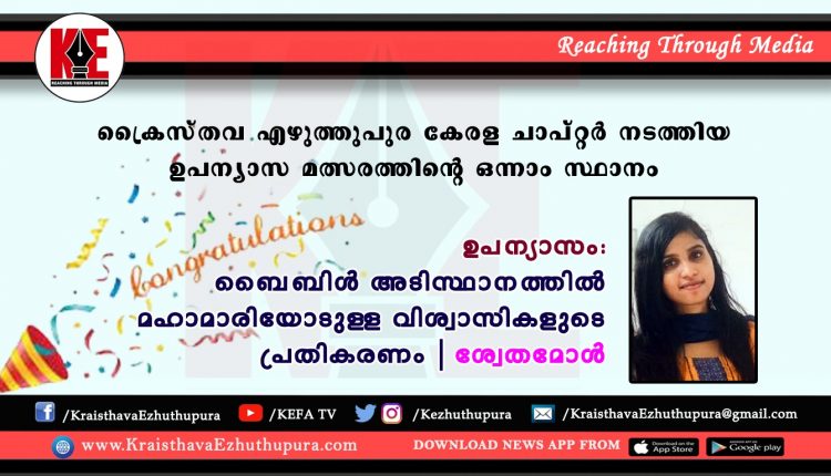 ഉപന്യാസം : ബൈബിൾ അടിസ്ഥാനത്തിൽ മഹാമാരിയോടുള്ള വിശ്വാസികളുടെ പ്രതികരണം | ശ്വേതമോൾ