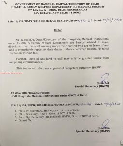 കോവിഡ് 19; ഡൽഹിയിൽ ആരോഗ്യ പ്രവർത്തകരുടെ അവധികൾ റദ്ദാക്കി