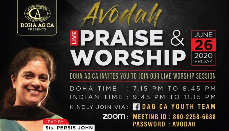 ദോഹ ഏ.ജി ക്രൈസ്റ്റ് അംബാസിഡേർഴ്സിന്റെ നേതൃത്വത്തിൽ “അവോദ (ആരാധന) 2020” ഓൺലൈനിലൂടെ നടക്കുന്നു