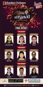 ക്രൈസ്തവ എഴുത്തുപുര ഒമാൻ ചാപ്റ്റർ “വീട്ടിലെ പാട്ടുകാർ” വിജയികളെ പ്രഖ്യാപിച്ചു
