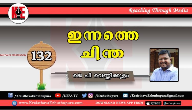 ഇന്നത്തെ ചിന്ത : കല്പന അനുസരിക്കുന്നതുതന്നെ സ്നേഹമാകുന്നു, | ജെ.പി വെണ്ണിക്കുളം