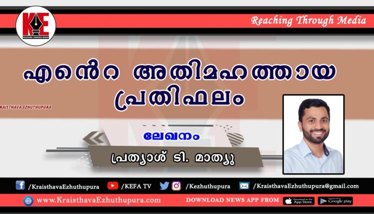 ലേഖനം: എൻെറ അതിമഹത്തായ പ്രതിഫലം | പ്രത്യാശ് ടി. മാത്യു