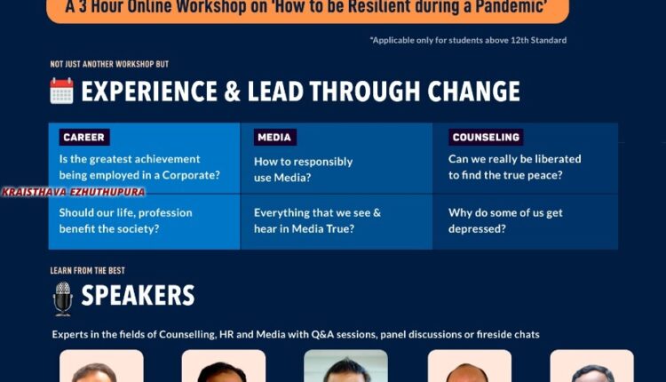 ബാംഗ്ലൂർ : ഐ.സി.പി.എഫ് ബെംഗളൂരു ചാപ്റ്ററിന്റെ ആഭിമുഖ്യത്തിൽ ഓഗസ്റ്റ് 8 ന് വൈകുന്നേരം 5 മണി മുതൽ, ‘എങ്ങനെ ഒരു മഹാമാരിയോട് ചെറുത്തുനിൽക്കാം’ എന്ന വിഷയത്തെ ആസ്പദമാക്കി സിൽവർ ലൈനിങ് നടത്തപ്പെടുന്നു.