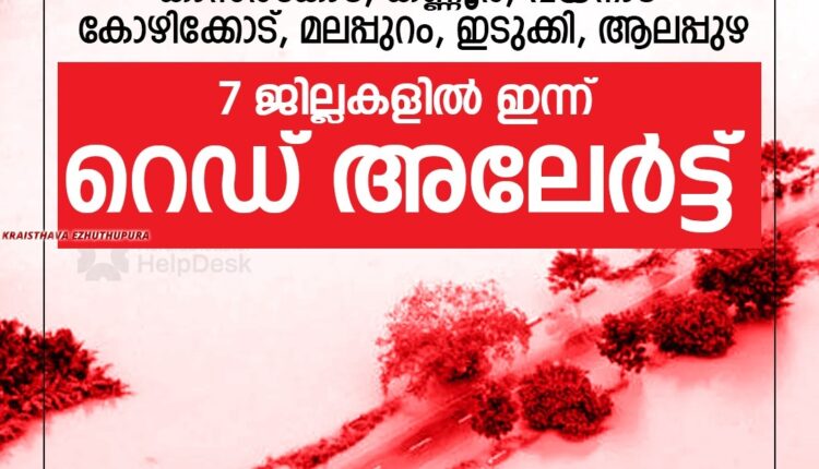ബുധനാഴ്ച വരെ കനത്ത മഴ തുടരും, ഇന്ന് 7 ജില്ലകളില് റെഡ് അലര്ട്ട്, അണക്കെട്ടുകള് നിറയുന്നു