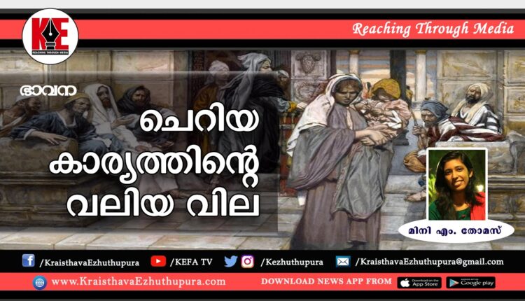 ആകെയുള്ള ഈ നാണയം നിക്ഷേപിച്ചാൽ തന്റെ കയ്യിൽ ഇനിയൊന്നുമില്ലെല്ലോ എന്ന് ചിന്തിച്ചില്ല..