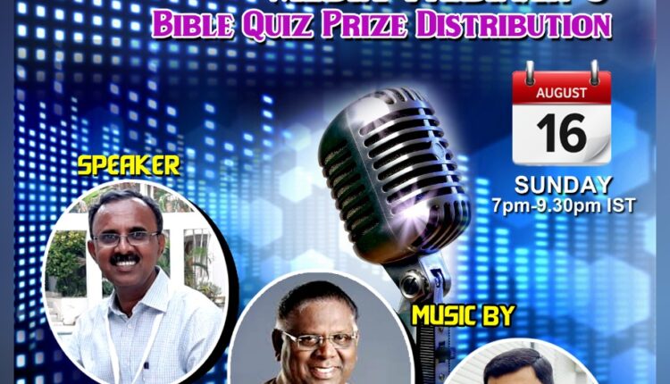 ഗുജറാത്ത് : ക്രൈസ്തവ എഴുത്തുപുര ഗുജറാത്ത് ചാപ്റ്ററിന്റെ ആഭിമുഖ്യത്തിൽ മ്യൂസിക് ഇവന്റ് ,മീഡിയ വെബിനാറും, ബൈബിൾ ക്വിസ് സമ്മാനദാനവും നടത്തപ്പെടുന്നു. ഇന്ന്(16-8-20) രാത്രി 7 മണി മുതൽ 9:30 വരെ സൂമിലൂടെയാണ് മീറ്റിംഗ് നടക്കുന്നത്.