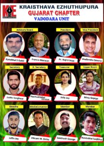ഷൈലേന്ത്ര സക്സേന( വൈസ് പ്രസിഡന്റ്) ജെസ്റ്റിൻ വർഗ്ഗീസ്(സെക്രട്ടറി) ഹാസ്മുഖഭായി ക്രിസ്റ്റൻ (ജോയിന്റ് സെക്രട്ടറി), ജോളി ജോയി ( ട്രഷറാർ), നിസ്സി ജോർജ്ജ് ( അപ്പർ റൂം), ജെഫിൻ ജോയി (ശ്രദ്ധ), വിക്രാന്ത് എം.സിൻഹ( മീഡിയാ), സന്തോഷ് ജോർജ്ജ്, നന്തുഭായി സാവിജിഭായി എന്നിവരെ കമ്മറ്റി അംഗങ്ങളായും തിരഞ്ഞെടുത്തു. തുടർന്നും 33 ജില്ലകൾ ഉള്ള വിശാല ഗുജറാത്തിൽ കെ.ഇ യുടെ പ്രവർത്തന വിശാലതയ്ക്ക് വേണ്ടി ഏവരുടേയും പ്രാർത്ഥന ആവശ്യപ്പെടുന്നുവെന്ന് ഭാരവാഹികൾ അറിയിച്ചു.
