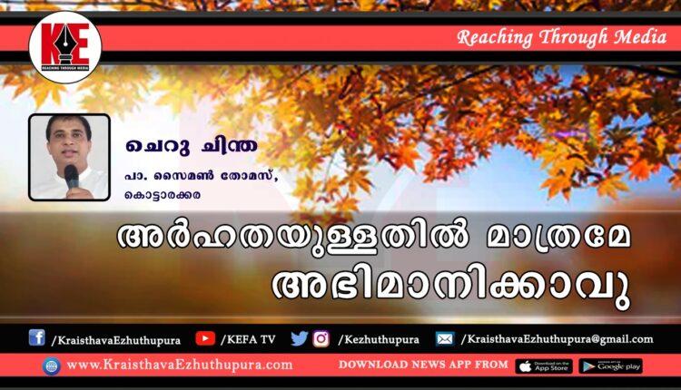 ചെറു ചിന്ത: അർഹതയുള്ളതിൽ മാത്രമേ അഭിമാനിക്കാവു | പാ. സൈമൺ തോമസ്, കൊട്ടാരക്കര