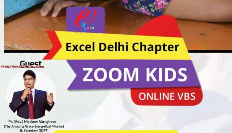 ഡൽഹി : എക്സൽ വി.ബി എസ് ഡൽഹി ചാപ്റ്റർ zoom മാധ്യമത്തിലൂടെ കുട്ടികൾക്കായി വി.ബി.എസ് കോൺഫറൻസ് സംഘടിപ്പിക്കുന്നു.ആഗസ്ത് 22 വെളിയാഴ്ച്ച 6 മുതൽ 7(IST) മണി വരെ എക്സൽ സൂം കിഡ്സ് പ്രോഗ്രാം എന്ന പേരിലാണ് പ്രോഗ്രാം നടത്തപ്പെടുന്നത്.
