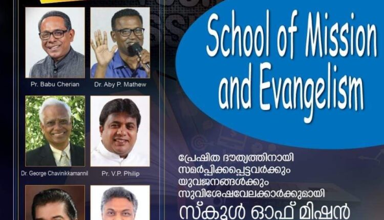 പ്രേഷിത ഭൗത്യത്തിനായി സമർപ്പിക്കപ്പെട്ടവർക്കും, യുവജനങ്ങൾക്കും, സുവിശേഷവേലക്കാർക്കുമാണ് സ്കൂൾ ഓഫ് മിഷൻ ആൻഡ് ഇവാഞ്ചലിസം നടത്തപ്പെടുന്നത്. പാസ്റ്റർ ബാബു ചെറിയാൻ, ഡോ.എബി പി.മാത്യു, ഡോ.ജോർജ്ജ് ചവണിക്കമണ്ണിൽ, പാസ്റ്റർ വി.പി ഫിലിപ്പ്, പാസ്റ്റർ വി.റ്റി എബ്രഹാം, സജു ജോൺ മാത്യു എന്നിവർ ക്ലാസുകൾ നയിക്കും.