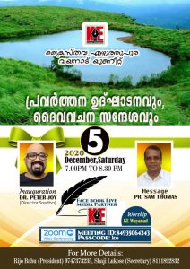 വയനാട് : ക്രൈസ്തവ എഴുത്തുപുര വയനാട് യൂണിറ്റ് പ്രവർത്തനോദ്ഘാടനം നാളെ (നവംബർ 5) രാത്രി 7 മണിമുതൽ സൂമിലൂടെ നടത്തപ്പെടുന്നു.