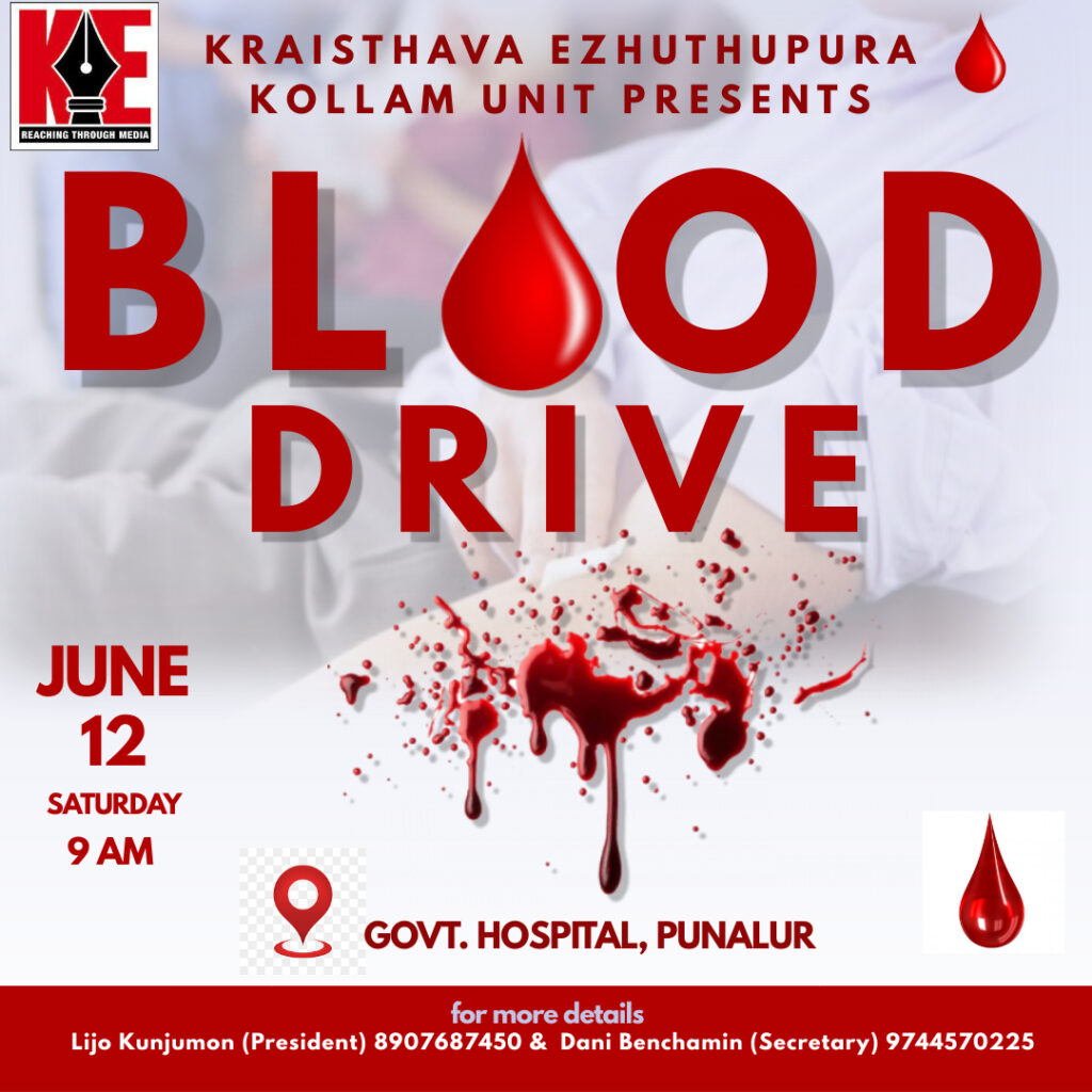 ക്രൈസ്തവ എഴുത്തുപുര കൊല്ലം യൂണിറ്റ്: ബ്ലഡ് ഡ്രൈവ് ജൂൺ 12 ന്