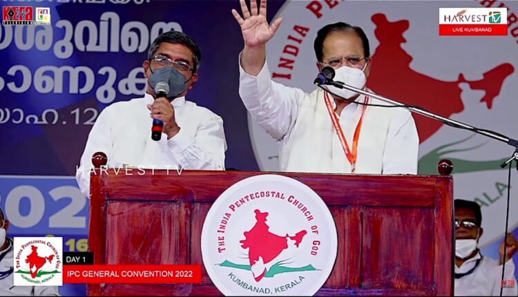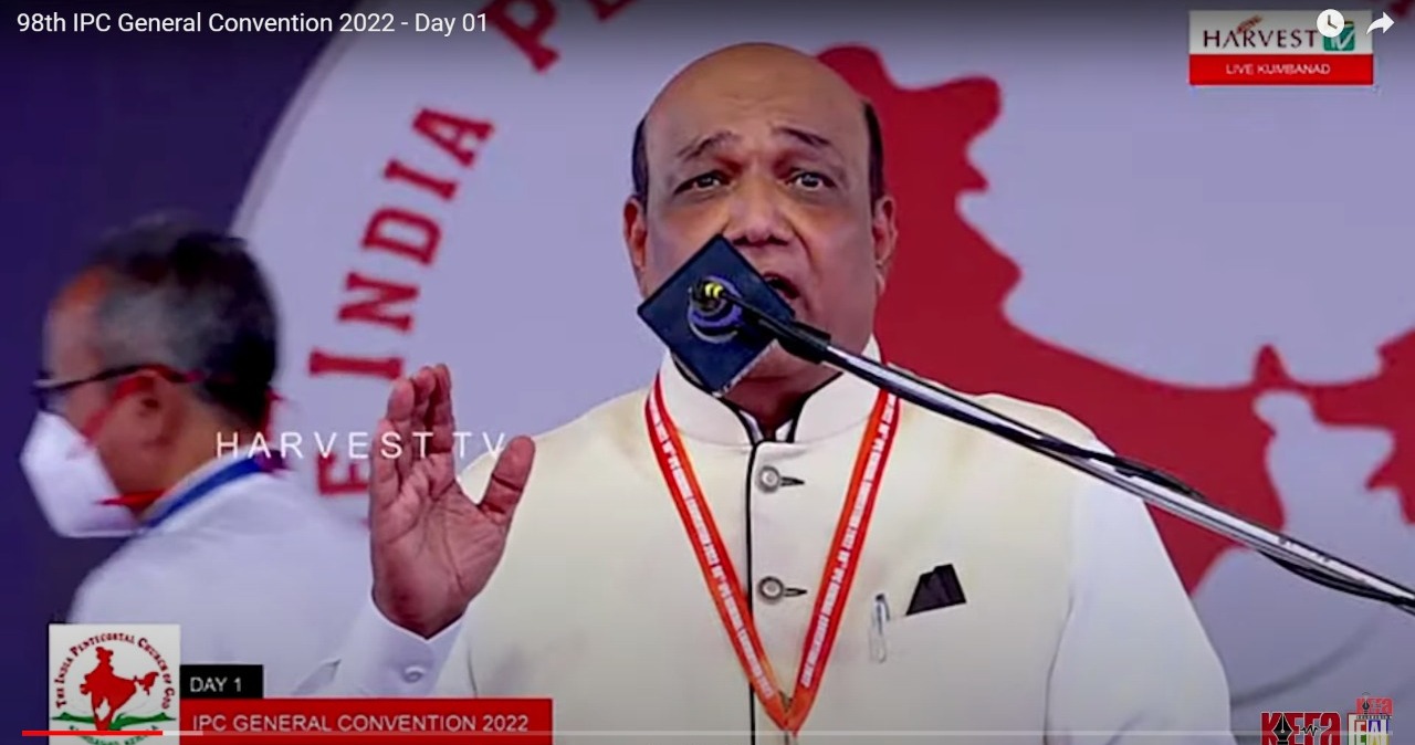 ഇന്ത്യാ പെന്തെക്കോസ്ത് ദൈവസഭയുടെ 98-ാമത് ജനറല് കണ്വന്ഷൻ ഉദ്ഘാടനം ചെയ്തു സംസാരിക്കുകയായിരുന്നു അദ്ദേഹം .ഇന്ന് മുതൽ 23 വരെ സഭാ ആസ്ഥാനമായ കുമ്പനാട് ഹെബ്രോന്പുരത്താണ് കൺവൻഷൻ നടക്കുന്നത്.