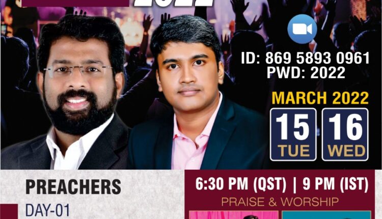 ഖത്തർ : ക്രൈസ്തവ എഴുത്തുപുര ഖത്തർ ചാപ്റ്ററിന്റെ നേതൃത്വത്തിൽ കേഫാ കൺവെൻഷൻ 2022 മാർച്ച് 15, ചൊവ്വ & 16, ബുധൻ തീയതികളിൽ സൂം പ്ലാറ്റ്ഫോമിൽ നടക്കും. ഖത്തർ സമയം വൈകിട്ട് 6 : 30 [ ഇന്ത്യൻ സമയം 9 :00 പിഎം ] മുതൽ ആയിരിക്കും കൺവെൻഷൻ ആരംഭിക്കുക. ക്രൈസ്തവ എഴുത്തുപുര ജനറൽ സെക്രട്ടറി ഇവാ: എബിൻ അലക്സ്, കാനഡ കൺവെൻഷൻ ഉത്ഘാടനം ചെയ്യും. പാസ്റ്റർ ജോ തോമസ് പ്രാരംഭ ദിവസവും പാസ്റ്റർ ഫെയ്ത് ബ്ലെസ്സൻ രണ്ടാം ദിവസവും ദൈവവചനത്തിൽ നിന്നും സംസാരിക്കും. ബ്രദർ രഞ്ജിത് എബ്രഹാം ഡൽഹി , പാസ്റ്റർ ബിനു ജോൺ & സിസ്റ്റർ ഇവാഞ്ചലിൻ ബി ജോൺ തുടങ്ങിയവർ സംഗീത ശുശ്രൂഷക്കു നേതൃത്വം നൽകും.