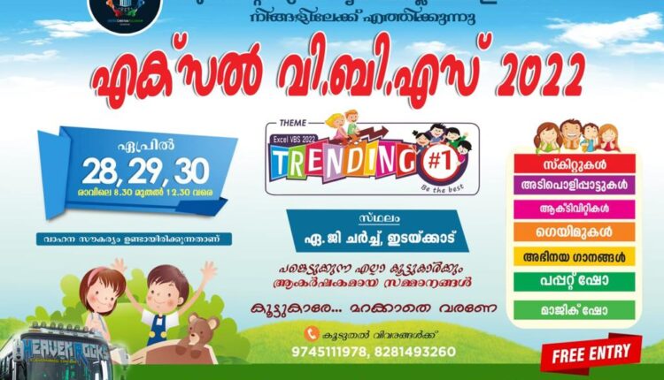 ഇടക്കാട്: ഇടയ്ക്കാട്ടുള്ള ദൈവസഭകളുടെ ഐക്യ കൂട്ടായ്മയായ യു.സി.ഫ് ഏപ്രിൽ 28 -30 വരെ സങ്കടിപ്പിച്ച മൂന്നു ദിവത്തെ എക്സൽ വി.ബി.എസ് നു അനുഗ്രഹ സമാപ്തി.