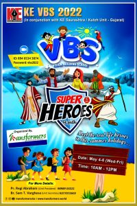 ഗുജറാത്ത് : ക്രൈസ്തവ എഴുത്തുപുര സൗരാഷ്ട്ര- കച്ച് യൂണിറ്റും, ട്രാൻസ്ഫോമേഴ്സ് ഇന്ത്യയും സംയുക്തമായി നടത്തുന്ന ‘സൂപ്പര് ഹീറോസ് ഓഫ് ഫെയ്ത്ത്’ വി ബി എസ് – 2022 ഇന്ന് ആരംഭിച്ചു. സാം സ്കറിയയുടെ പ്രാർഥനയോടെ ആരംഭിച്ച വിബിഎസ് ക്രൈസ്തവ എഴുത്തുപുര ഗുജറാത്ത് ചാപ്റ്റർ പ്രസിഡന്റ് പാസ്റ്റർ ബിനുമോൻ ബേബി ഉത്ഘാടനം ചെയ്തു. സോങ്ങ്, ആക്ഷൻ സോങ്ങ്, ബ്രേക്ക് ഔട്ട് ക്ലാസ്, ഫാമിലി മീറ്റ്, ഡിവോഷൻ തുടങ്ങിയ പ്രോഗ്രാമുകൾ രാവിലെ 10 മണി മുതല് 12 മണി വരെ നടന്നു. യൂണിറ്റ് പ്രസിഡൻറ് പാസ്റ്റര് റെജി എബ്രഹാം പ്രാർത്ഥനയും ആശിർവാദവും നൽകി. വി.ബി.എസ് വ്യാഴാഴ്ച സമാപിക്കും.