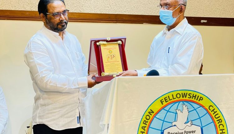 പാസ്റ്റർ കോശി ഉമ്മനും കുടുംബത്തിനും ശാരോൻ ഫെല്ലോഷിപ്പ് ഷാർജാ സഭയുടെ യാത്ര അയപ്പ്