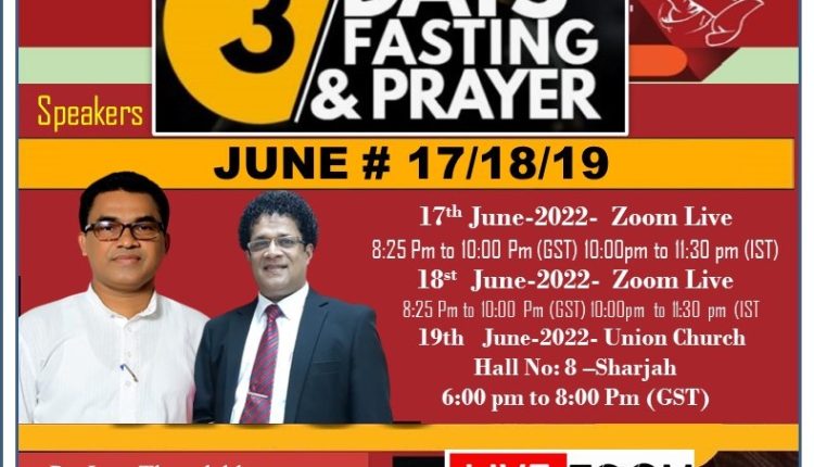 ഷാർജ പെനിയേൽ പെന്തെക്കോസ്ത് ചർച്ച് ഉപവാസ പ്രാർത്ഥന ജൂൺ 17 മുതൽ