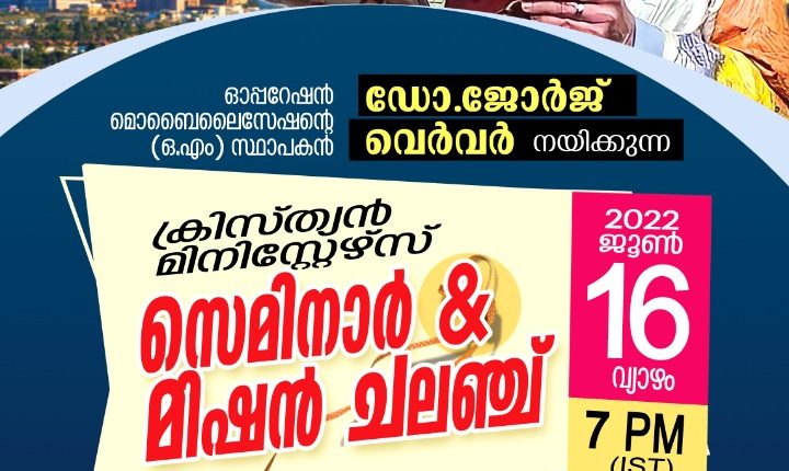 ഡോ. ജോർജ്ജ് വെർവർ നയിക്കുന്ന സെമിനാറും മിഷൻ ചലഞ്ചും ജൂൺ 16ന്