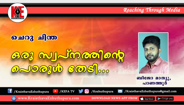 ചെറുചിന്ത: ഒരു സ്വപ്നത്തിന്റെ പൊരുൾ തേടി | പാസ്റ്റർ ബിജോ മാത്യു, പാണത്തൂർ