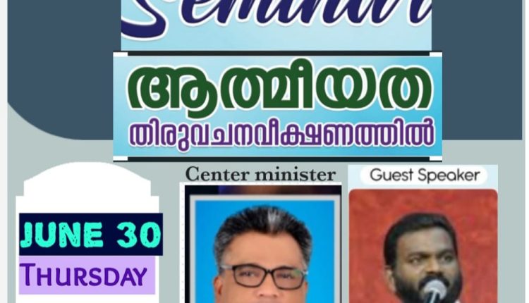 കണ്ണൂർ: ഐപിസി കണ്ണൂർ സെന്റർ ” ആത്മീയത തിരുവചന വീക്ഷണത്തിൽ” എന്ന തീം ആസ്പദമാക്കി” ഒരുക്കുന്ന ഏകദിന സെമിനാർ ജൂൺ 30ന് രാവിലെ 10 മുതൽ 4:30 വരെ ഐപിസി കൊട്ടൂർവയൽ സഭയിൽവച്ചു നടക്കും. സെമിനാറിൽ പാസ്റ്റർ എബി എബ്രഹാം പത്തനാപുരം ക്ലാസുകൾ നയിക്കുകയും സെന്റർ പ്രസിഡന്റ് പാസ്റ്റർ എം ജെ ഡൊമിനിക് നേതൃത്വവും നൽകും.