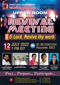 ക്രൈസ്തവ എഴുത്തുപുര കർണാടക ചാപ്റ്റർ അപ്പർ റൂമിന്റ റിവൈവൽ മീറ്റിംഗ് നാളെ
